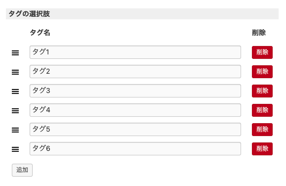 カスタムフィールドはタグとは異なり、そのままでは管理画面から気軽に追加したり削除したりすることはできませんが、モジュールフィールド(フィールドグループ)として設定するカスタマイズが可能です。下の例では、エントリー編集画面のカスタムフィールドの右に「タグを編集」というボタンを設け、モジュールフィールド(フィールドグループ)でその選択肢を編集しています。